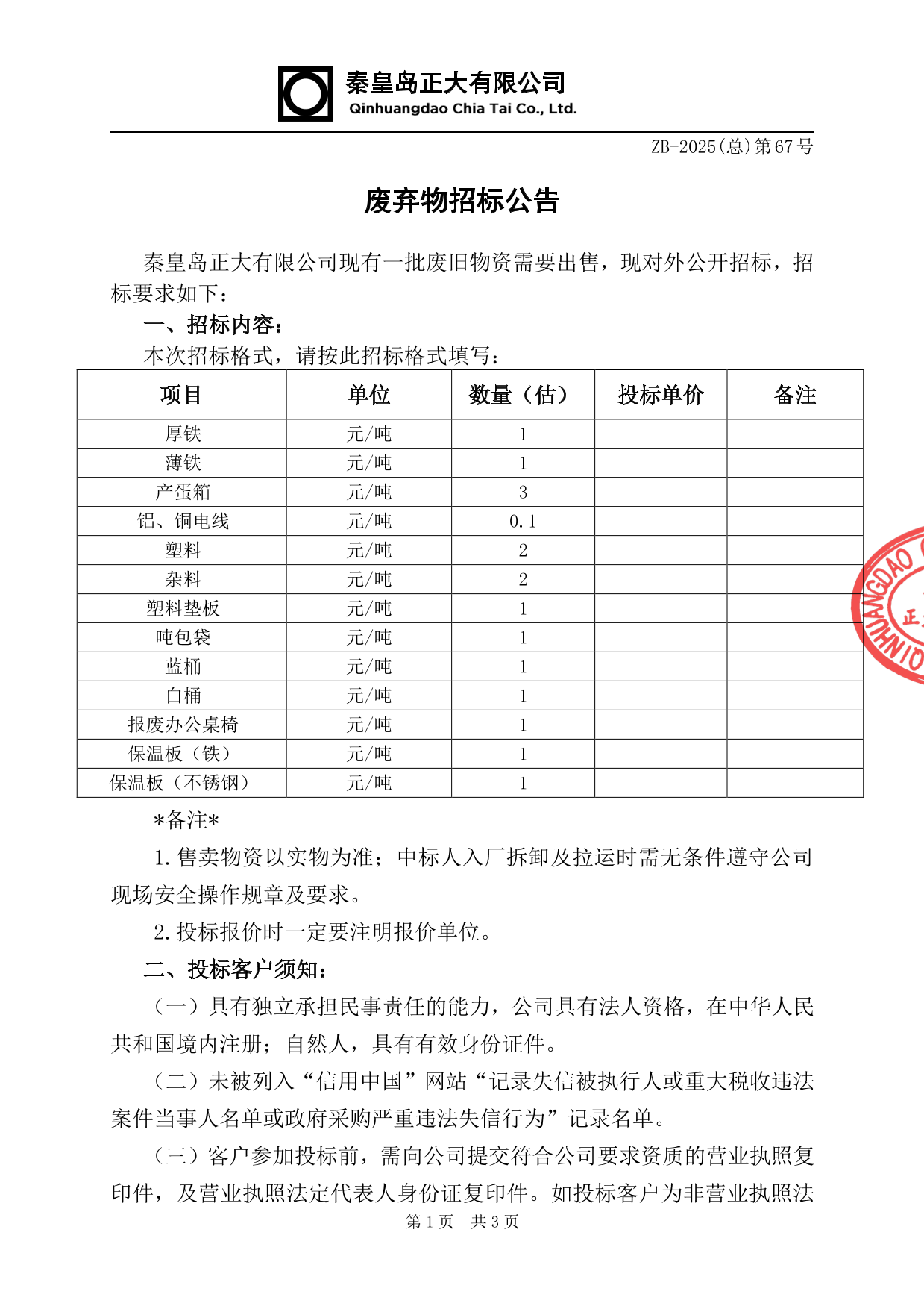 废弃物招标公告
