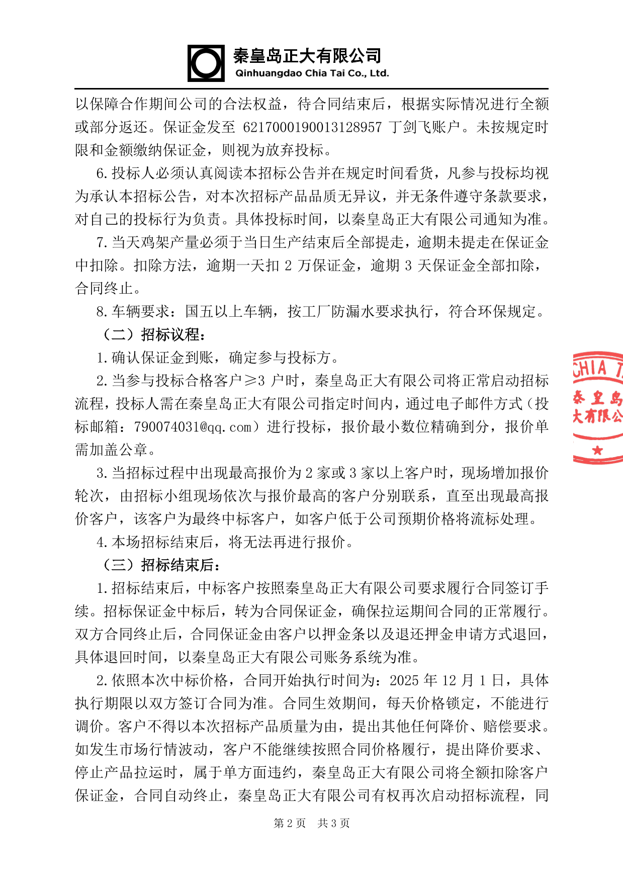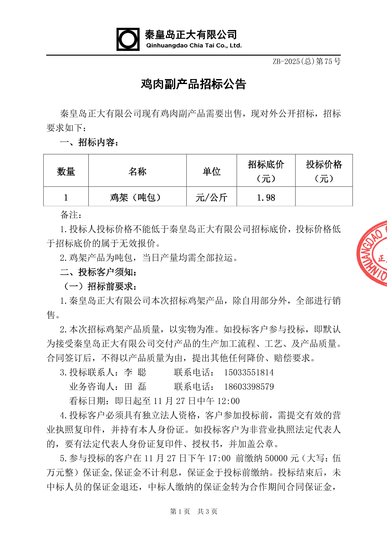 鸡肉副产品招标公告
