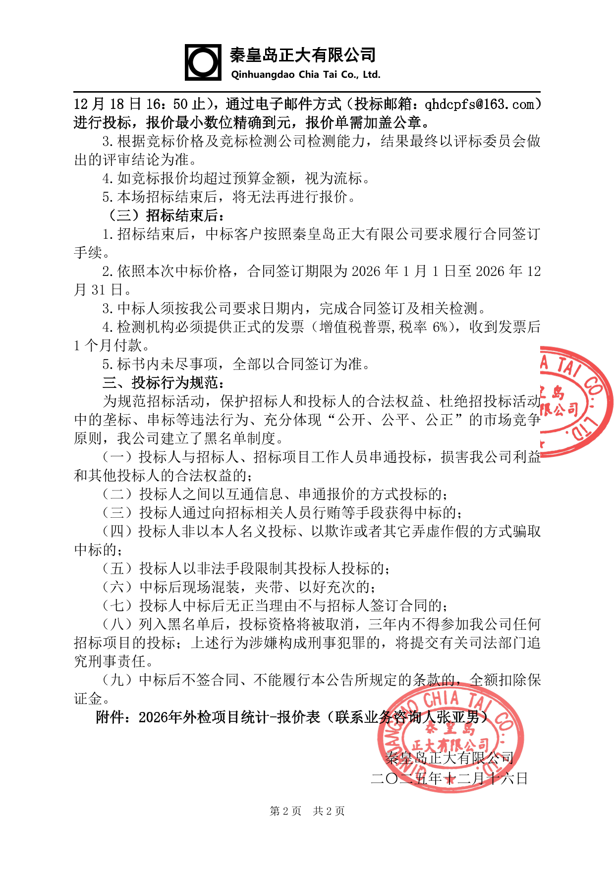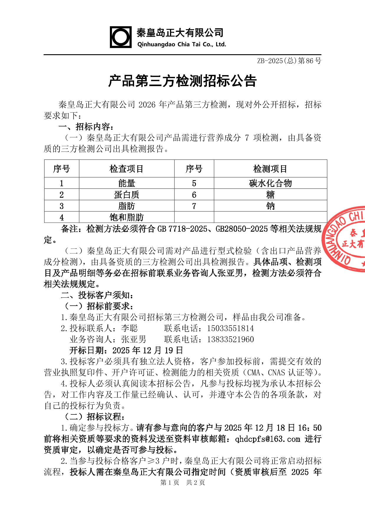 产品第三方检测招标公告